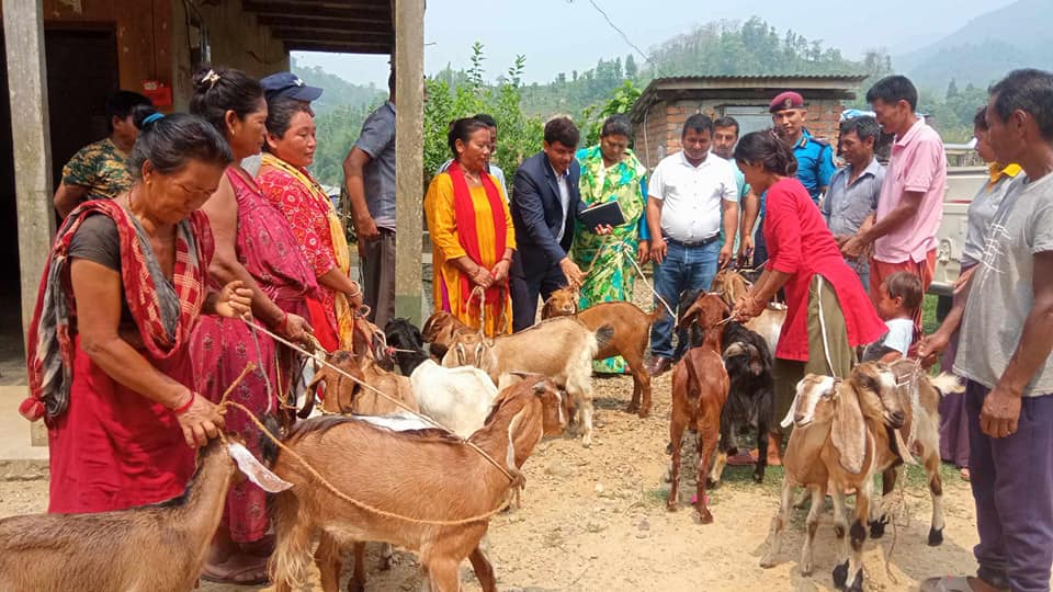 मरिण गाउँपालिका गाउँपालिका वडा नं. २ का वडा अध्यक्ष कमल बहादुर आले मगर ,गाउँपालिकाका उपाध्यक्ष श्री विमला माझी प्रशासकीय अधिकृत ओम बहादुर दर्जीले किसानहरुलाई उन्नत जातको बाख्राको पाठी वितरण गर्नुभएको थियो।