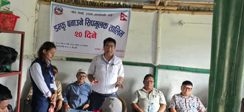 सिन्धुलीको हरिहरपुरगढी गाउँपालिका–४, हाकपारामा तामाङ समुदायलाई लक्षित गरी डम्फु बनाउने सीपमूलक तालिम सुरु भएको छ।
