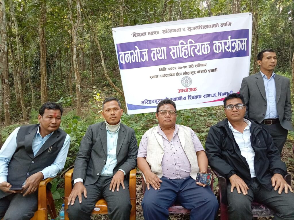 सिन्धुलीको हरिहरपुरगढी स्थानीय शिक्षक समाजको आयोजनामा आज शनिबार हरिहरपुरगढी गाउँपालिका–४ स्थित सुन्दर, शान्त र रमणीय लोहासुर पोखरी परिसरमा वनभोज तथा साहित्यिक कार्यक्रम भव्य रूपमा सम्पन्न भएको छ।